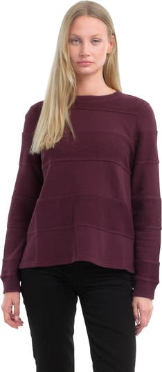 A fresh take on a classic silhouette. This cozy French Terry sweatshirt features reversed-fabric stripe accents, adding natural texture and a laid-back, lived-in feel. Soft, comfortable, and uniquely detailed—perfect for effortless everyday styling. Round neckline with reversed-fabric stripe detailing 100% cotton Machine washable Imported Model is wearing a size Small.
