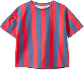 The vertical striped T-Shirt is a playful and bold garment, designed in distinctive colorways of Green/Orange and Red/Blue. Exceptionally soft, the shirt is made from Tencel™ fabric that is produced by environmentally responsible processes from the sustainably sourced natural raw material wood.