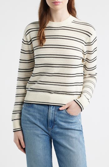 Coming in 100% cotton, this crewneck sweater features a textured pointelle stitch and a relaxed fit. With a classic stripe pattern, it's an essential piece you can layer over a button-up or under a favorite jacket.