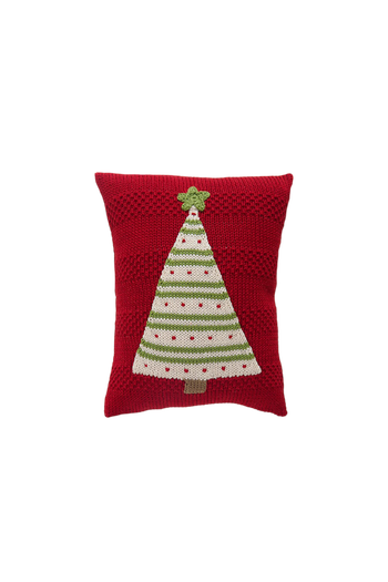 This little knit holiday throw pillow features a charming Christmas tree design, adding a festive touch to your home decor. The tree is beautifully decorated with stripes of green and white, dotted with red accents, and topped with a star, all set against a rich red background. Crafted from high-quality cotton yarn, this pillow adds a cozy, seasonal flair to any room. Its compact size makes it perfect for layering on a couch, chair, or bed, adding a pop of festive cheer to any space. Whether you're decorating for the season or looking for a thoughtful gift, this pillow is sure to bring holiday cheer!