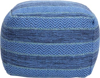 Striped Woven Cotton Square Pouf - 14" - Blue