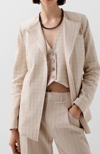 - multi-position lapel collar. Checked print outer. striped print lining. Button fastening and piped front pockets.