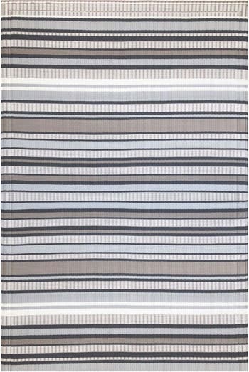 - - 100% recycled polypropylene - UV / fade resistant - water repellent / mold resistant - stain resistant - indoor & outdoor use - debris and sand brushes right off - was with a hose or mop and light detergent