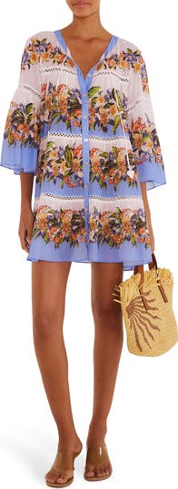 Skin-baring insets further the breezy vibe of this flowy cover-up dress made of lightweight cotton and rendered in a shirt-inspired high-low silhouette.