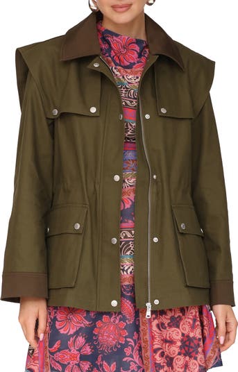 This relaxed-fit coat features a detachable overlay that spreads from front to back, creating an on-trend strong-shoulder look when you're in the mood. Cut from all-cotton canvas, it features contrasting cotton sateen accents at the collar and cuffs.