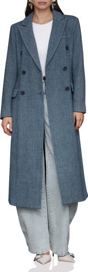 Tailored to perfection, this double-breasted herringbone coat features structured shoulders and a nipped-in waist for a striking hourglass silhouette. It’s the ultimate wear-forever layer for elevated everyday style.