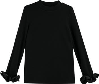 A playful twist on a wardrobe essential, this long-sleeve top features soft scrunchie-style satin cuffs. The clean crew neckline and straight silhouette make it easy to style, while the ruffled sleeves add a touch of whimsy. Heathered cotton blend with classic crew neck. Satin ruffle cuffs for a feminine, standout finish.