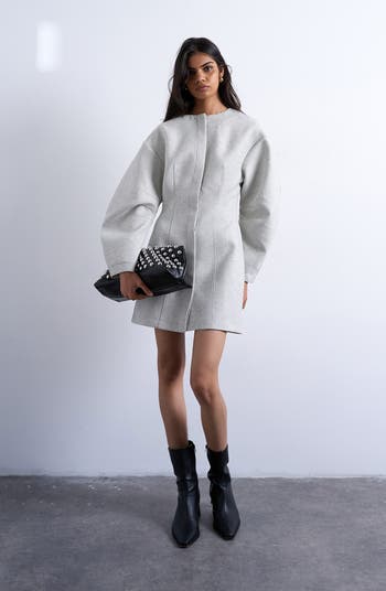 Cut from a lightweight woven fabric, this cocoon-inspired structured mini with shapely seams is a modern look that pairs well with chic dinner dates.