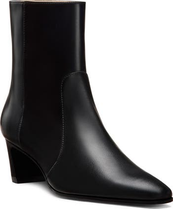 A snip toe and concave demi heel bring dimension and balance to a Spanish-made leather bootie fastened with a full-length side zipper.