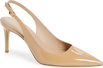 Streamlined and understated, this pointy-toe slingback pump sits on a slender stiletto and holds the power to elevate any ensemble.
