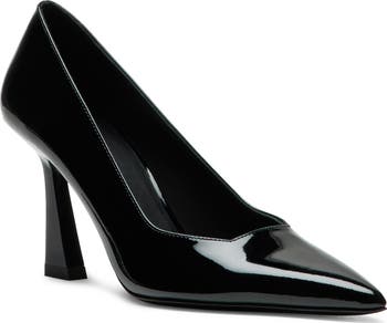 Streamlined and designed to stand out, this liquid-shine pump sits high on a dramatically flared heel that angles back while moving your style game forward. Let it add a kick to your professional wardrobe or a sense of adventure to your going-out looks.
