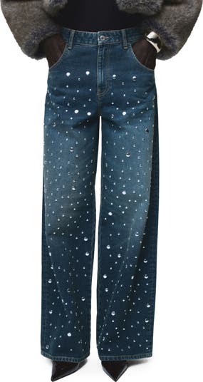Add some edge to your going-out look with these straight-leg jeans made from nonstretch denim and adorned with polished stud accents.