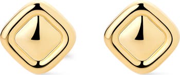 Soften up your stack with these simple stud earrings. Plated in 14k gold, these studs feature a square-shaped design with rounded corners for a touch of softness.