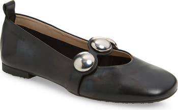Gleaming oversized studs decorate the strap of this leather ballet flat set on a cushioned EVA and memory gel footbed.