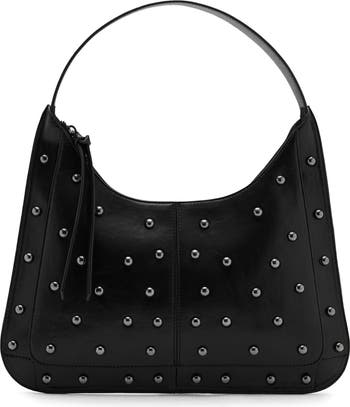 Polished studs add shine and texture to this faux-leather shoulder bag that carries your essentials while making a modern style statement.