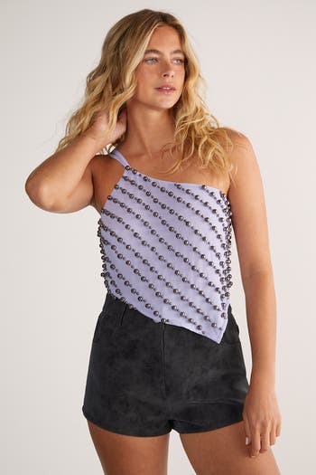 Make a statement with this head-turning Nasty Gal studded top that commands attention. The asymmetric one-shoulder design creates a contemporary silhouette whilst the diagonal studded pattern adds dimension and visual interest. Complete the outfit with statement boots or heels to enhance the dramatic effect. This versatile piece works brilliantly for cocktail parties, club nights or special occasions where you want to showcase your bold fashion sense.