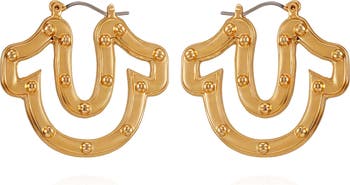Classic with a luxe twist, these True Religion gold horseshoe hoop earrings embody timeless charm and brand heritage. Perfect for adding a subtle yet sophisticated edge to any outfit, they’re a must-have staple for those who appreciate understated elegance.