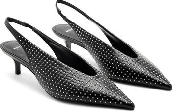 Modernize your special-occasion selection by adding this pointy-toe pump to the mix, complete with a studded faux-leather upper and a kitten heel for of-the-moment style.