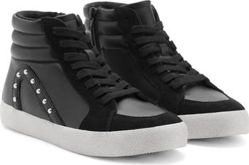 A padded topline gives a style boost to this sporty sneaker finished with a trail of glinting studs.