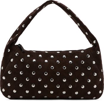 Gleaming studs amp up the bold moto edge of this slim-profile shoulder bag made from rich, supple suede.