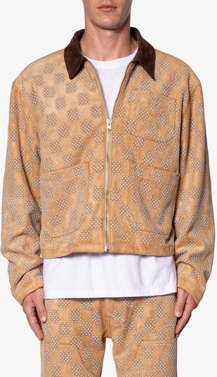 A textural checkerboard design brings mesmerizing dimension to this relaxed jacket complete with a corduroy collar for a touch of rugged charm.