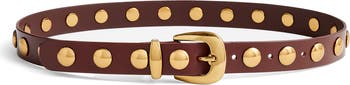 Shiny round studs punctuate a soft leather belt that'll instantly illuminate any ensemble.