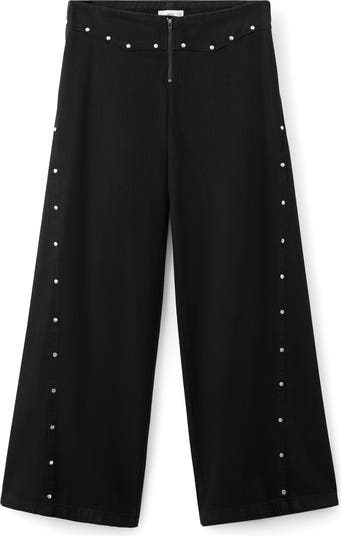 High-shine studs amp up the edge of these nonstretch wide-leg jeans topped with an exposed zip.