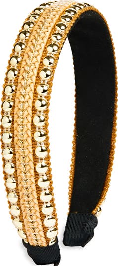 A sudded weave boldly textures the top of this easy headband that sparkles atop your hairstyle.