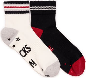 Step up your workout game with Muk Luks Women's Studio Socks! These quarter-crew compression socks are designed to keep you moving with breathable cotton and a ribbed cuff for a secure fit. Whether you're hitting the mat or the gym, the silicone grippers on the bottom help you stay grounded and balanced. Slip into comfort and confidence?because your fitness deserves some flair!