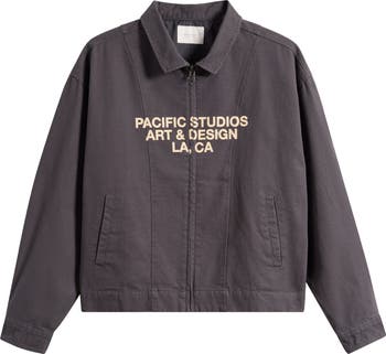 Designed for creative sprints and slow edits alike, this zip-front jacket is rendered in sturdy cotton twill that breaks in beautifully, while assertive logos stamp the chest and back with gallery-grade attitude. Reinforced seams and practical pockets underline the workwear roots, and the clean collar shapes a profile that reads museum-ready by day, studio-focused by night.