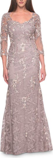 La Femme Stunning Beaded Lace Mother of the Bride Gown, Alternate, color, Dusty Mauve