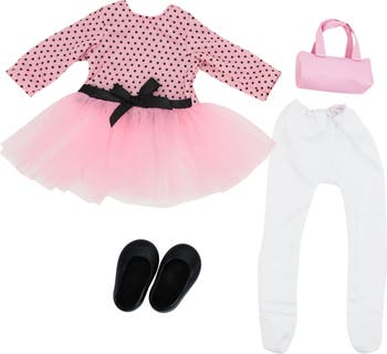 Style Girls 18" Doll Outfits are all about fashion and fun! You can change up your Style Girls look with fun, bright outfits. Be sure to dress your 18" doll with this beautiful in pink tutu outfit. It includes a long sleeved polka-dot top with tulle skirt and black ribbon on the waist. There are also white leggings, black ballet flats and even a matching pink purse. You will be ready to go out and have some wonderful fun with your friends and your Style Girls doll dressed in her new outfit! You can even try to match your own clothes to the doll's outfit. These outfits fit most 18" dolls. *Doll Accessory - Doll Not Included.