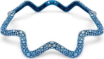 Swarovski crystal gradients, blue hues and a wavy silhouette embody the oceanic inspiration of this contemporary collar necklace.