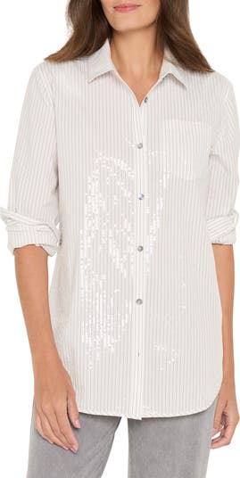 Subtle Shine Sequin Stripe Button-Up Shirt