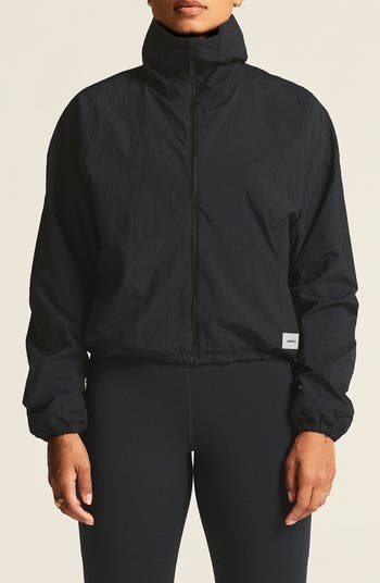 A waterproof finish lends season-spanning versatility to an athletic jacket crafted entirely from recycled materials for a feel-good fit with every wear.