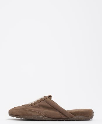 Mule sneakers with a suede and fabric upper and distinctive scalloped edges. Finished with a logo tongue, logo sole, and a leather insole customized with a stitched logo.
