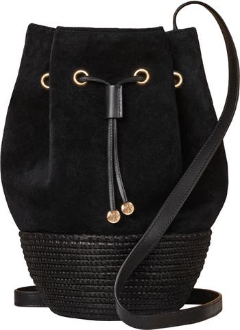 Suede and Sisal Drawstring Bucket Bag