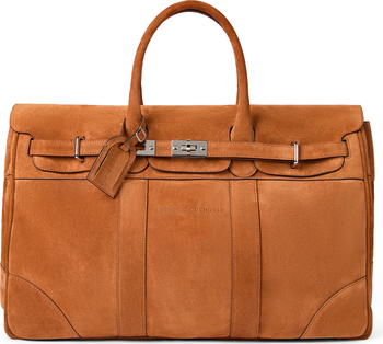 The soft suede features a shimmering, slightly irregular texture, enriched with water and stain-resistant treatments that help preserve the leather’s quality. The water-resistant fabric lining completes the accessory.