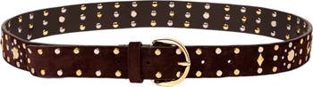 Suede belt embellished with metal rivets and fitted with a metal buckle.