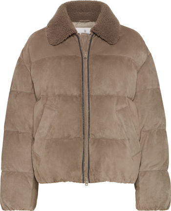 The style combines the velvety texture of suede and the soft, warm hand of refined merino shearling. All padding is certified according to the Responsible Down Standard (RDS).