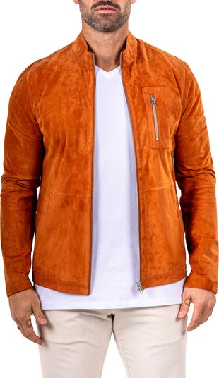 A handsome jacket in a slimming cut is gorgeously rendered from Italian lambskin leather with an ultrasmooth suede exterior.