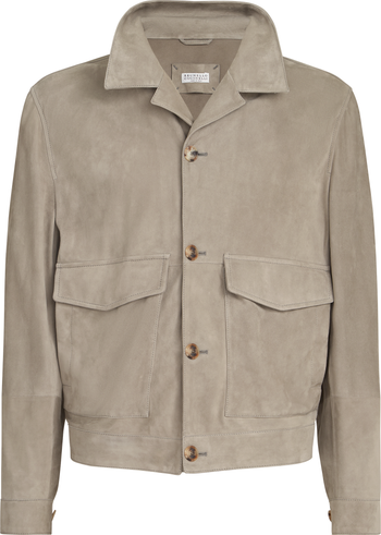 - Horn button closureShirt-style collarButtons at cuffsTwo hand pockets: welt and patch with flap and buttonUnlined