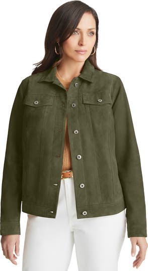Your favorite jean jacket gets a makeover in luxurious suede. All the classic details: shirt collar neckline, flap chest pockets, side-seam pockets and button cuffs. It’s a silhouette made to layer; wear it over your favorite tops and straight leg jeans for a look that’s classically cool.