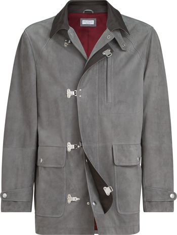 - Zip closure with metal hooksCollar may be worn raisedButton cuffsUpper pocket with zipperPatch hand pockets with flap and buttonTwo interior pockets with button closure and pen holder