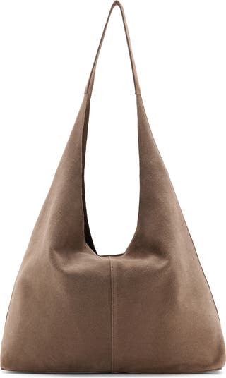 A slouchy design enhances the everyday comfort of this roomy shoulder bag rendered in supple suede.