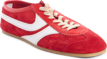 Sleek and low, this mixed-leather sneaker takes its design cues from the world of racing and its style cues from the realm of casual comfort. T-toe construction and a gum-rubber sole bring sporty details to the wear-with-practically-everything look.