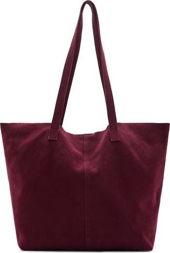 Carry your essentials around comfortably in this spacious suede tote bag done in a neutral palette that goes with almost everything.