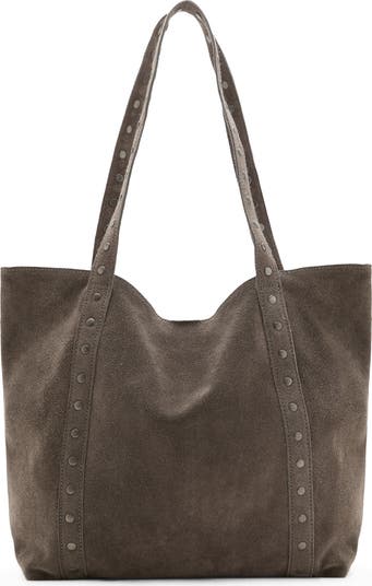 Brushed studs embolden the seams and straps of a voluminous tote shaped from supple suede and perfect for storing your on-the-go essentials.