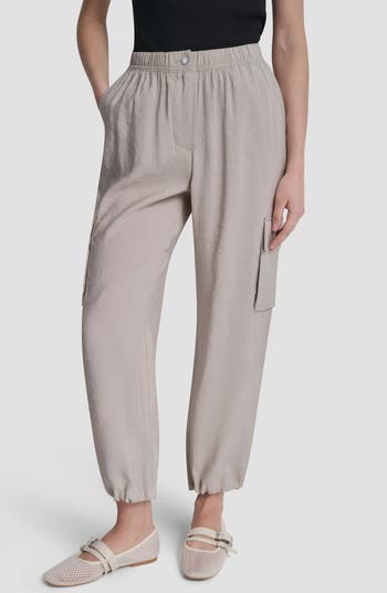 A lightweight style for casual days, these soft and breezy pants are styled with four roomy pockets, cinched ankles and an elastic waist for pull-on-and-go ease.