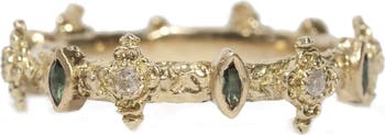 Moody sapphires and brilliant diamonds add to the old-world mystique of this 18-karat gold ring perfect for stacking.